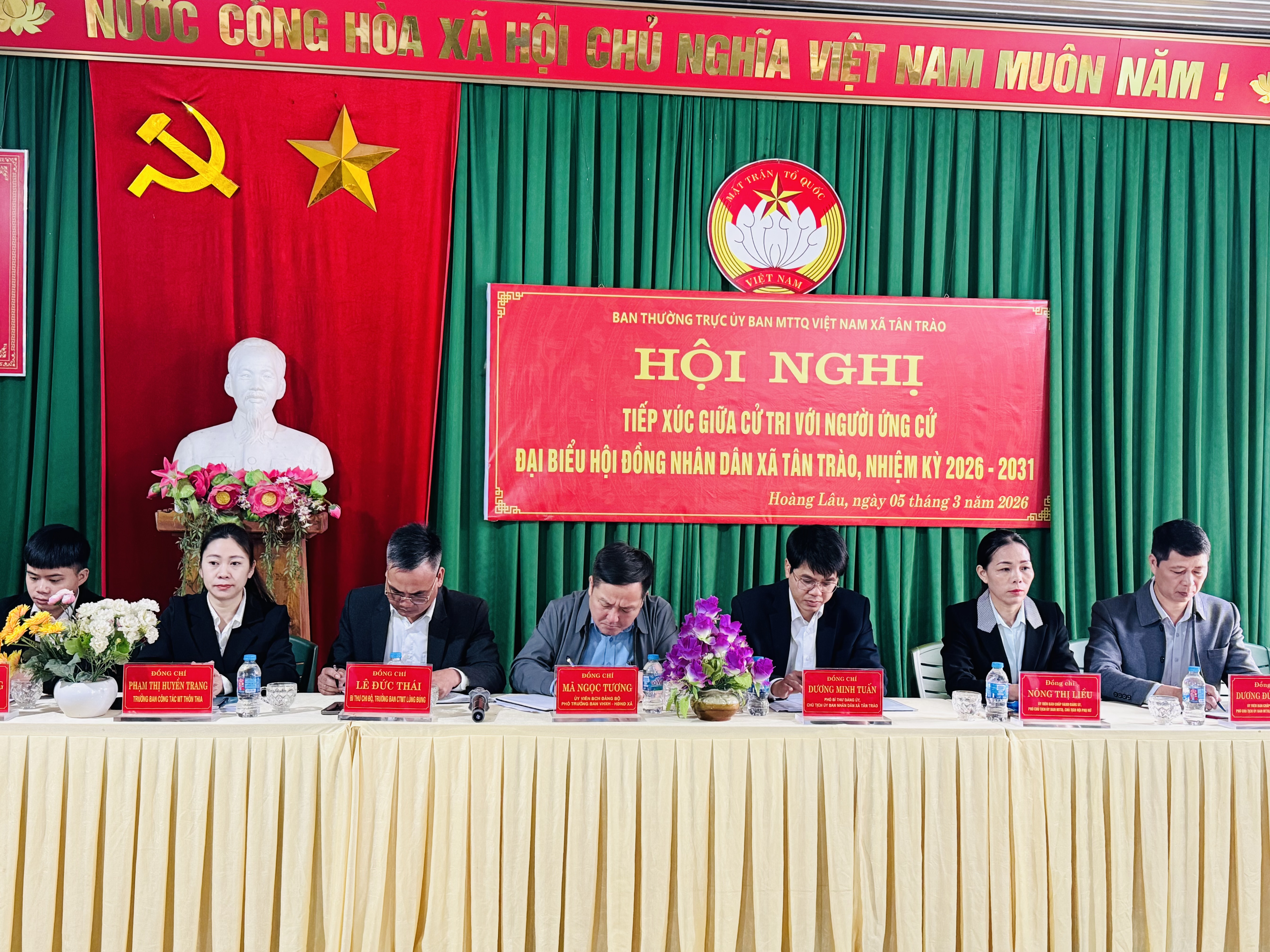 Từ ngày 5/3 – 9/3, tại địa bàn các thôn thuộc đơn vị bầu cử số 3 tổ chức Hội nghị tiếp xúc cử tri với những người ứng cử đại biểu HĐND xã Tân Trào khóa XXII, nhiệm kỳ 2026 – 2031.
