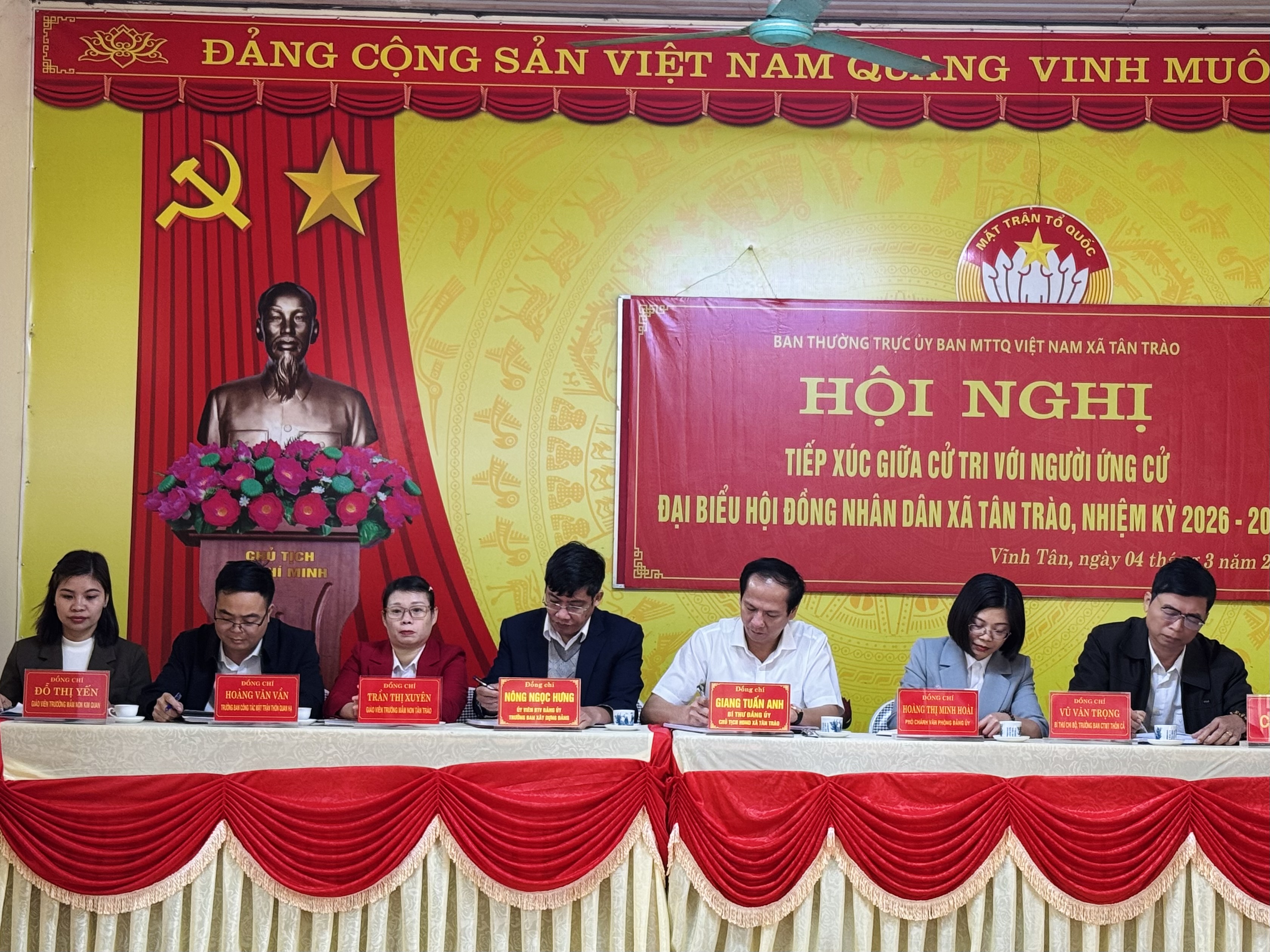 Ngày 4/3, tại nhà văn hóa thôn Vĩnh Tân và thôn Bòng, Ủy ban MTTQ xã Tân Trào đã tổ chức hội nghị tiếp xúc cử tri với những người ứng cử đại biểu HĐND xã Tân Trào khóa XXII, nhiệm kỳ 2026 – 2031 thuộc đơn vị bầu cử số 2.