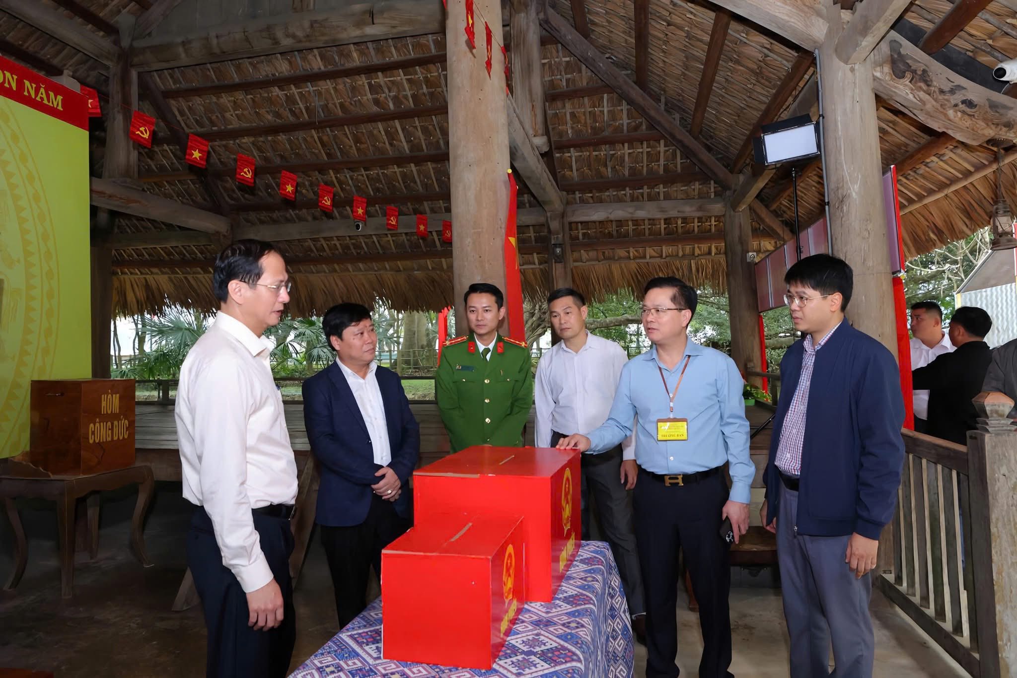 Đồng chí Nguyễn Văn Sơn, Phó Bí thư Tỉnh uỷ, Chủ tịch HĐND tỉnh Tuyên Quang kiểm tra công tác chuẩn bị bầu cử tại xã Tân Trào