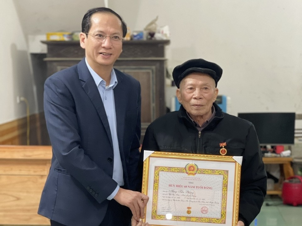 Chiều ngày 11/2, đồng chí Giang Tuấn Anh, Bí thư Đảng uỷ, Chủ tịch HĐND xã đã trao tặng Huy hiệu 60 năm tuổi Đảng cho đồng chí Nông Tiến Phong, đảng viên sinh sống tại thôn Quan Hạ.