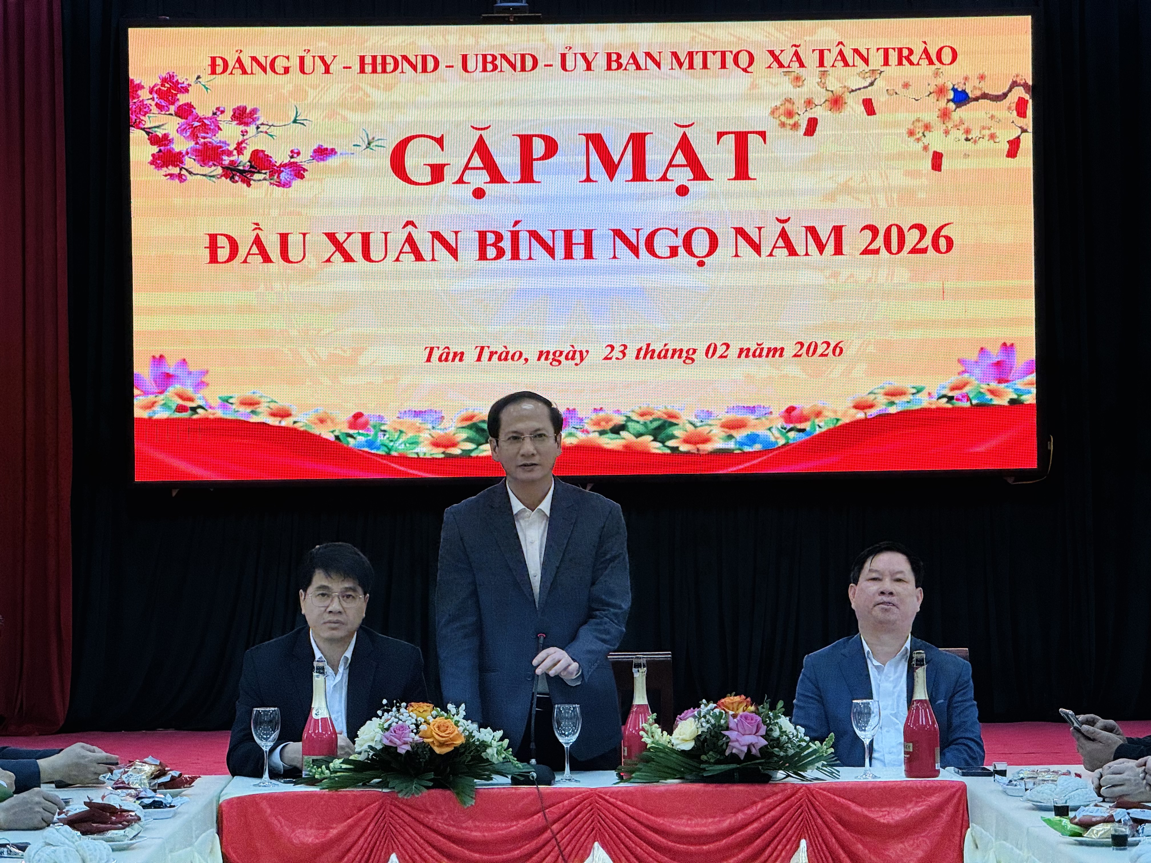 Sáng 23-2, Thường trực Đảng uỷ xã Tân Trào gặp mặt lãnh đạo, công chức, viên chức, người lao động UBND xã dịp đầu Xuân Bính Ngọ 2026. Các đồng chí Giang Tuấn Anh, Bí thư Đảng uỷ, Chủ tịch HĐND xã; Hoàng Văn Niên, Phó Bí thư Thường trực Đảng uỷ; Dương Minh Tuấn, Phó Bí thư Đảng uỷ, Chủ tịch UBND xã dự và chủ trì chương trình gặp mặt.
