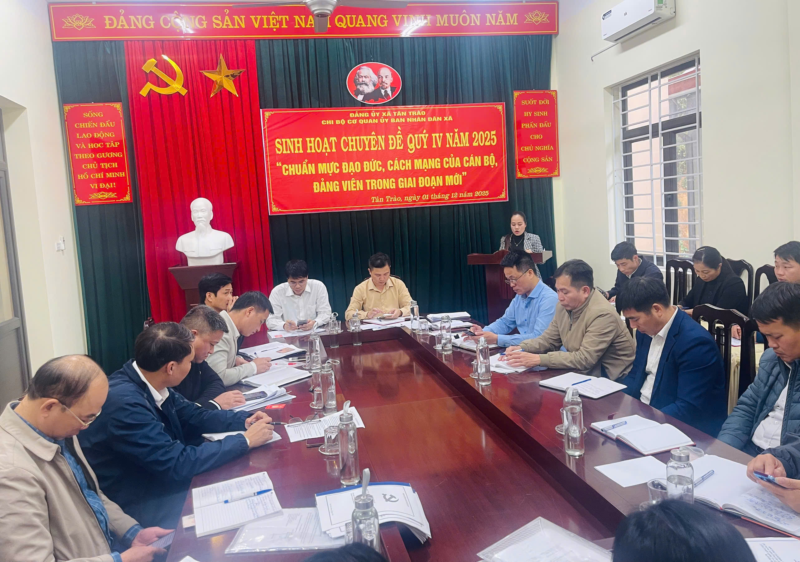 Phát biểu khai mạc, đồng chí Hoàng Văn Cảnh, Bí thư Chi bộ, nhấn mạnh ý nghĩa quan trọng của sinh hoạt chuyên đề trong việc nâng cao nhận thức và trách nhiệm của cán bộ, đảng viên trước yêu cầu nhiệm vụ trong giai đoạn mới. Đồng chí đề nghị các đảng viên tập trung trao đổi, làm rõ những chuẩn mực đạo đức, phong cách làm việc, tinh thần trách nhiệm, kỷ luật, kỷ cương hành chính và thái độ phục vụ Nhân dân.