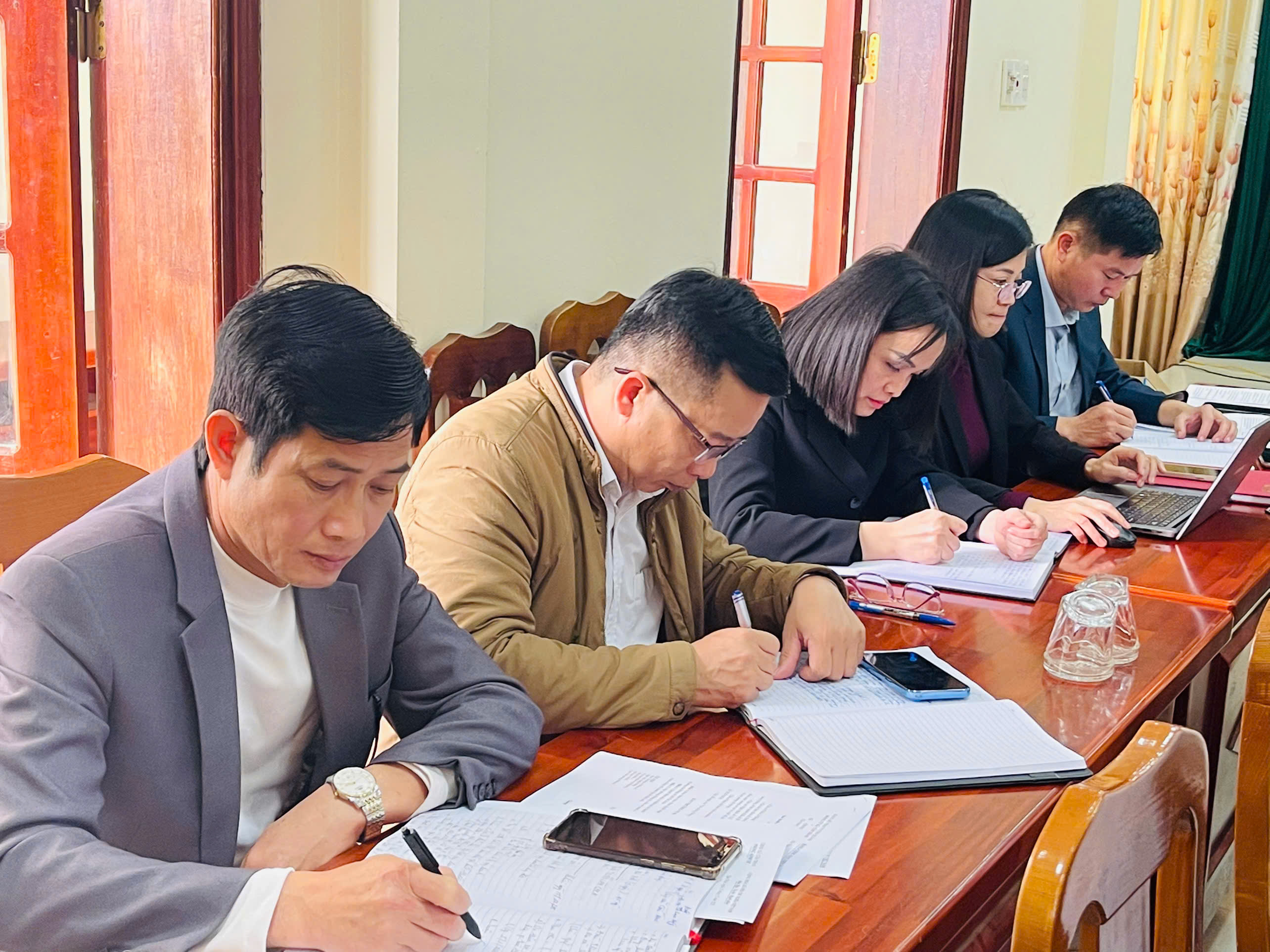 Đồng chí Giang Tuấn Anh, Bí thư Đảng uỷ, Chủ tịch HĐND xã chủ trì cuộc họp.