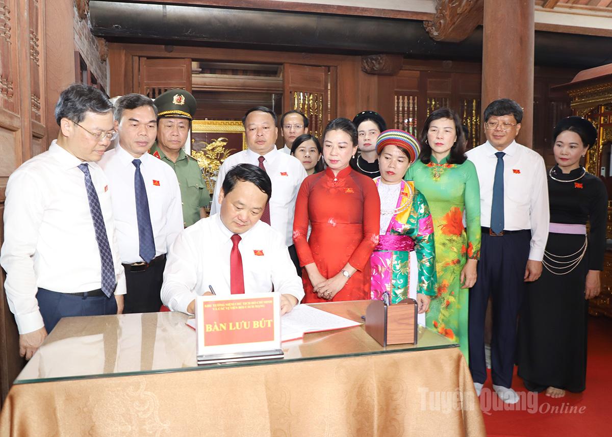 Trước Anh linh Bác kính yêu, Đảng bộ, chính quyền, Nhân dân các dân tộc tỉnh Tuyên Quang, Đoàn đại biểu nguyện vững mãi niềm tin sắt son vào sự lãnh đạo của Đảng; kiên định mục tiêu và con đường độc lập dân tộc gắn liền với chủ nghĩa xã hội mà Đảng và Bác đã lựa chọn; tiếp tục đẩy mạnh việc học tập, làm theo tư tưởng, đạo đức, phong cách của Bác; phát huy mạnh mẽ truyền thống quê hương cách mạng, đoàn kết, quyết tâm thực hiện thắng lợi các mục tiêu, nhiệm vụ định hướng phát triển của tỉnh, của đất nước đến năm 2030, tự cường, tự tin, tiến mạnh trong kỷ nguyên vươn mình của dân tộc.