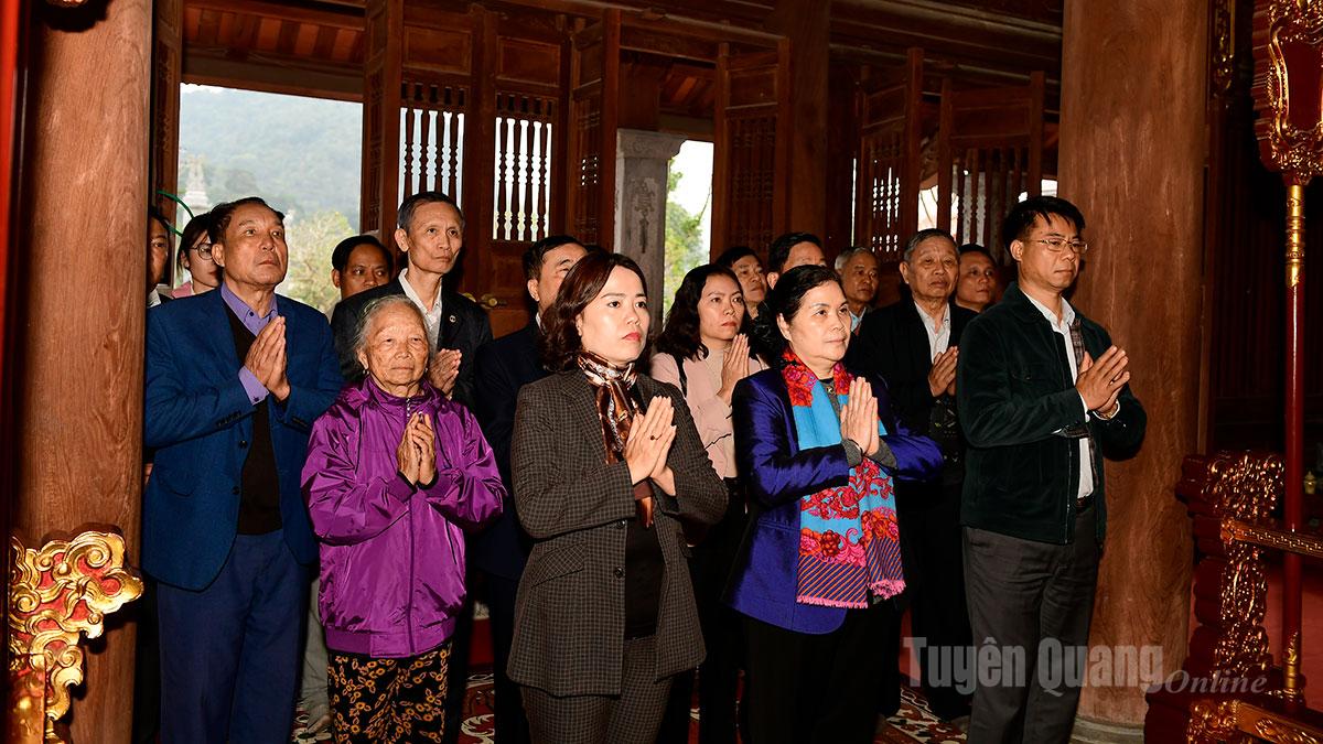 Đoàn dâng hương tại Đình Tân Trào, nơi đây vào ngày 16-17/8/1945, Quốc dân Đại hội đã họp thông qua 10 chính sách lớn của Việt Minh, quy định Quốc kỳ, Quốc ca và bầu ra Ủy ban Giải phóng dân tộc Việt Nam, tức Chính phủ lâm thời do lãnh tụ Hồ Chí Minh làm Chủ tịch… Quốc dân Đại hội Tân Trào có ý nghĩa quyết định vận mệnh của dân tộc, là bước chuẩn bị rất quan trọng cho cuộc Tổng tuyển cử đầu tiên của nước Việt Nam dân chủ Cộng hòa ngày 6/1/1946.