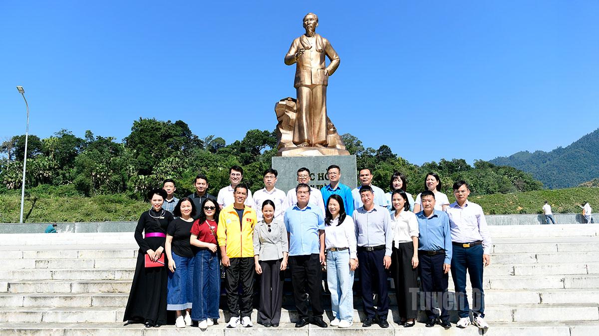 Đoàn đại biểu chụp ảnh lưu niệm tại Tượng đài Bác Hồ ở Tân Trào.