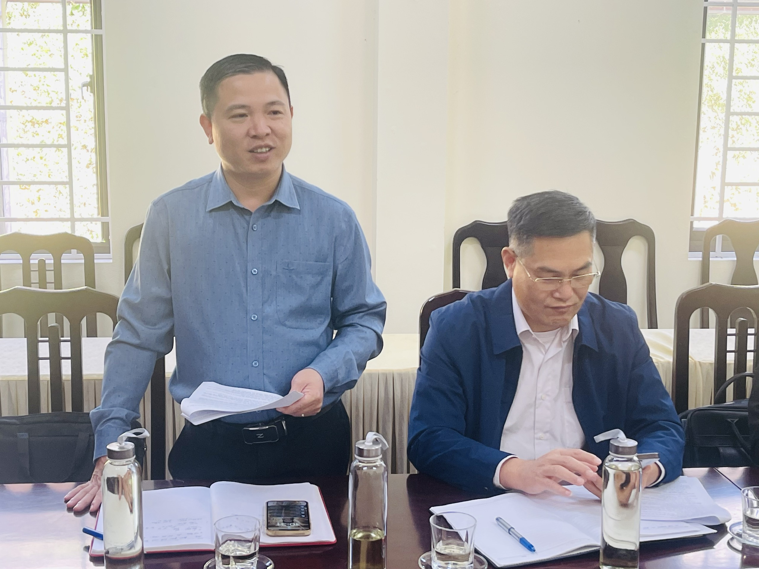 Đồng chí Hoàng Văn Cảnh, Uỷ viên BTV Đảng uỷ, Phó Chủ tịch UBND xã Tân Trào phát biểu báo cáo tại chương trình làm việc.