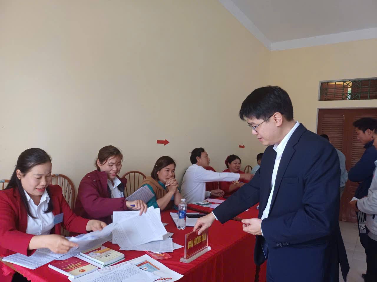 Theo đó, đồng chí đã đến thăm và kiểm tra tại các khu vực bỏ phiếu số 03, 04, 05 và 06, đặt tại Nhà văn hóa thôn Bòng, Nhà văn hóa thôn Cả, Nhà văn hóa thôn Yên Thượng và Nhà văn hóa thôn Hoàng Lâu. Tại mỗi điểm bỏ phiếu, đồng chí đã trao đổi với các tổ bầu cử về tình hình triển khai nhiệm vụ, tiến độ cử tri tham gia bỏ phiếu cũng như công tác phục vụ, hướng dẫn cử tri trong suốt quá trình diễn ra bầu cử.