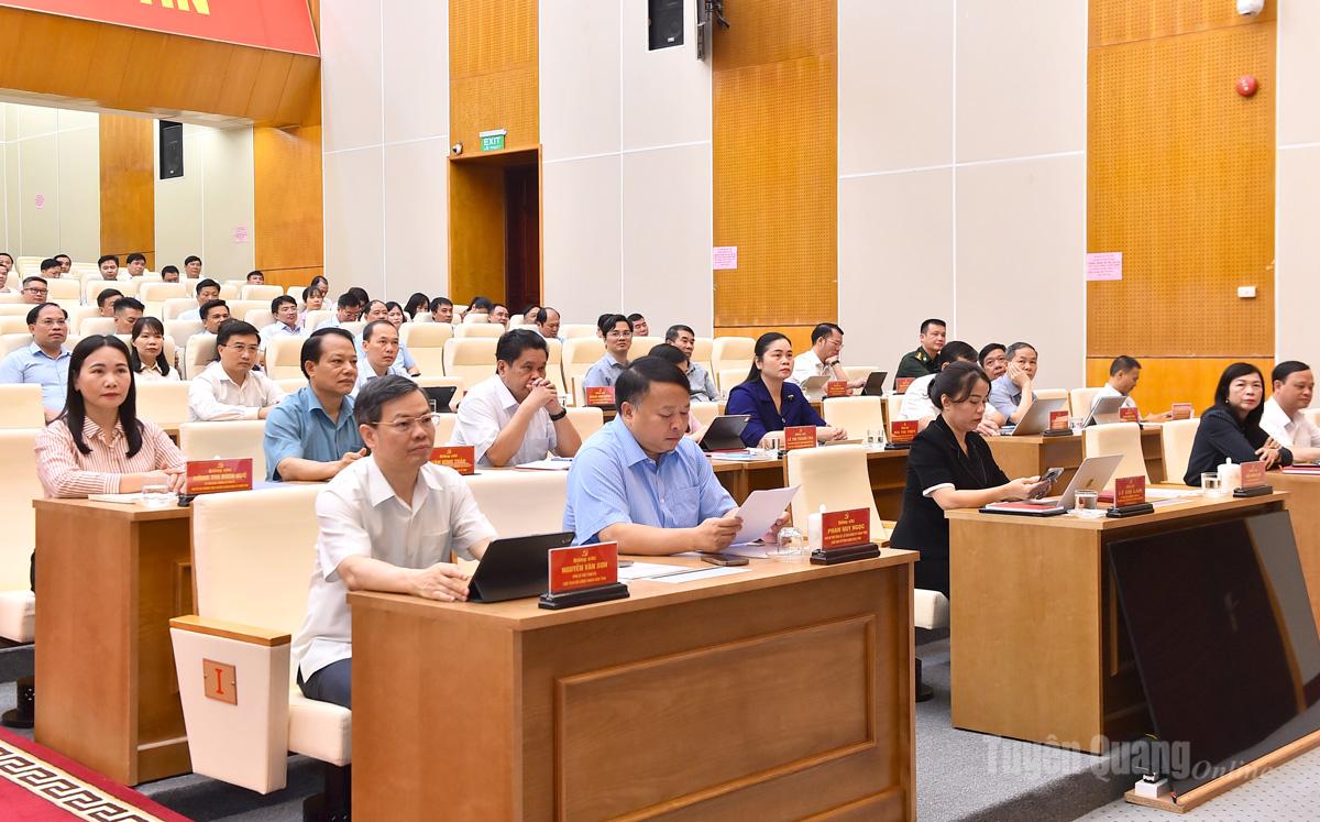 Các đồng chí Thường trực Tỉnh ủy và đại biểu dự hội nghị tại điểm cầu Tuyên Quang.