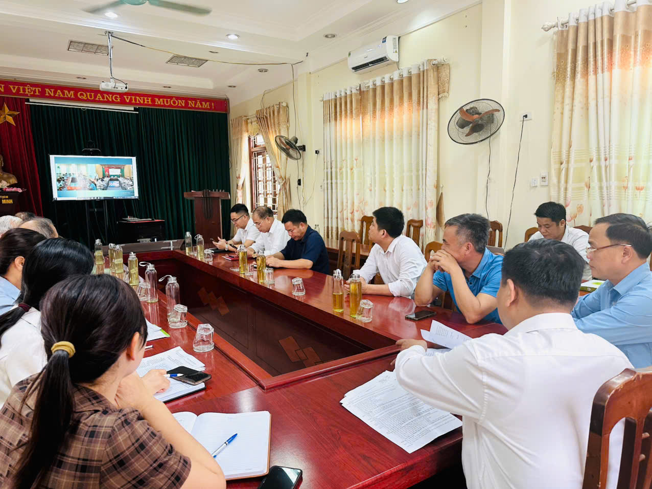 Đại biểu xã Tân Trào dự hội nghị theo hình thức trực tuyến.