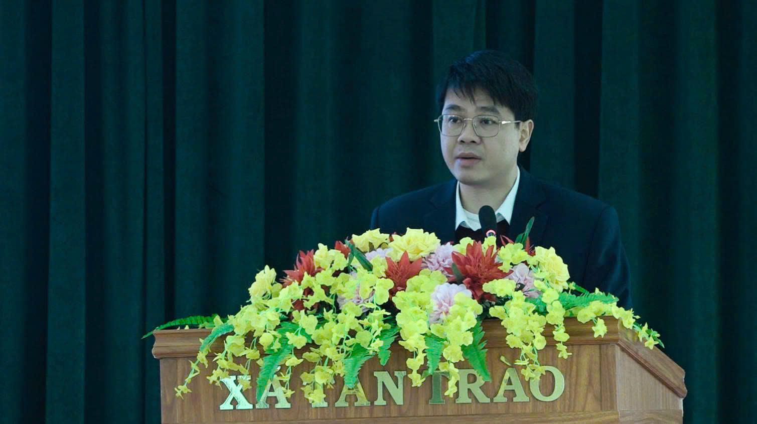 Đồng chí Chủ tịch UBND xã Tân Trào Dương Minh Tuấn phát biểu khai mạc hội nghị.